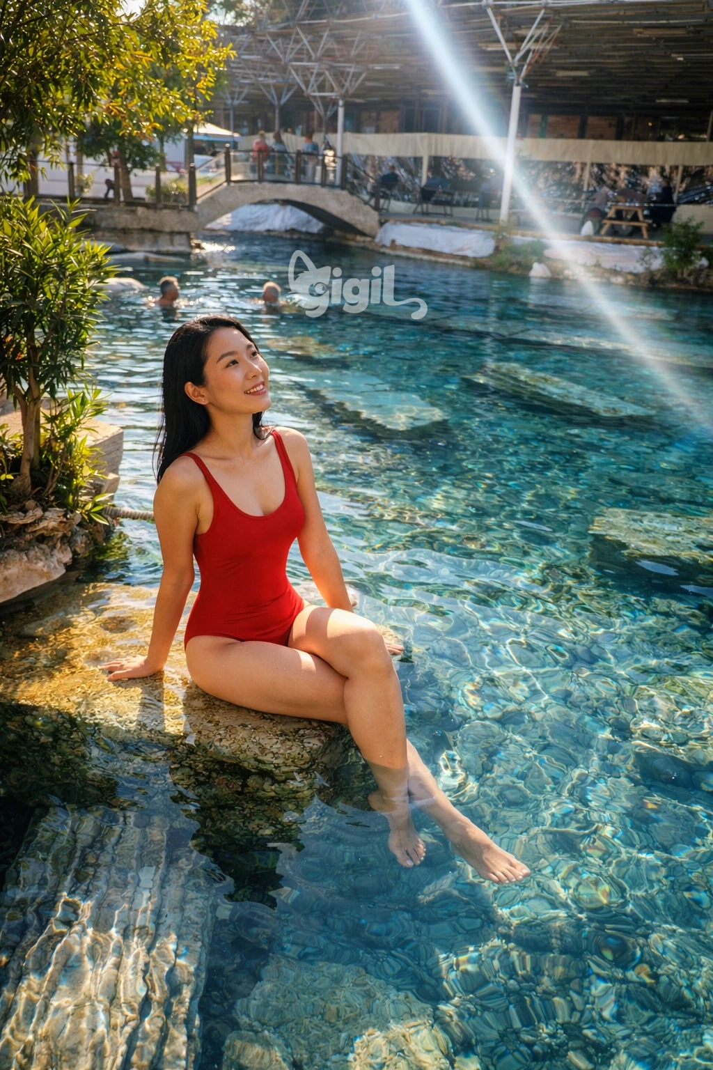 Optional swim and free exploration around the thermal pool.
